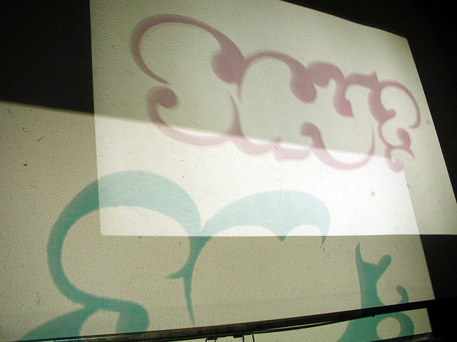 To combine the letterdesign aspect of the assignment with the many experiments, the group decided to take just one word which would then be shaped into a word-image. This way the group felt, that the possibilities of the different layers could be properly visualized. The final work includes six coloured layers and an outline layer. These layers can be mixed together and used for example three at a time. The layers are designed so that the word-image is legible even with a few of the them in use.