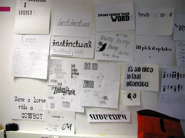Second day of our workshop. Today words became messages... or at least we tried to do that, which is not that easy. Save a horse, ride a cowboy... Longing for sun... Give me my steak... Balance through contrary...